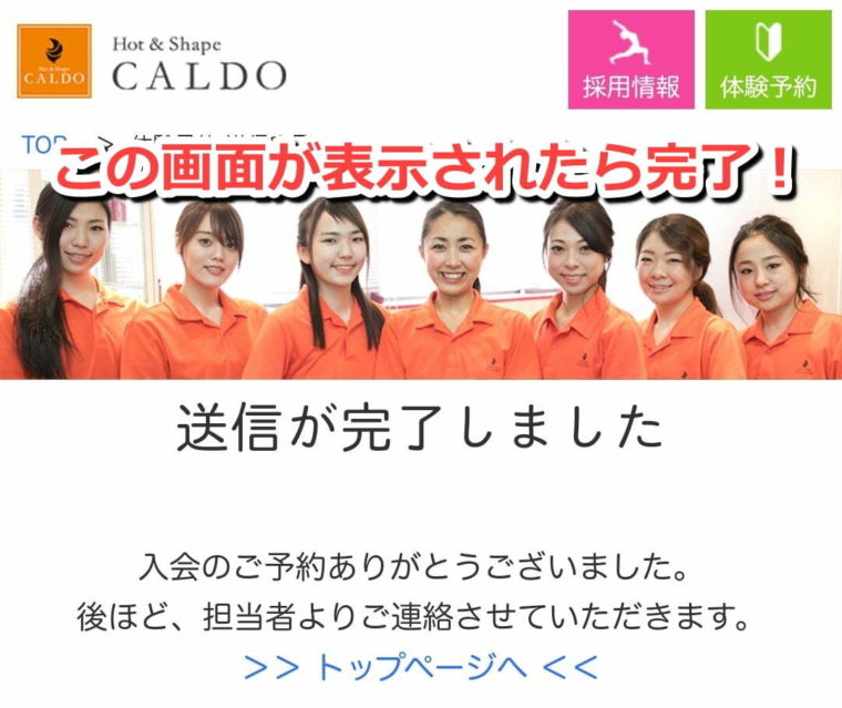 ⑦「送信が完了しました」が表示され確認メールが届いたら完了!