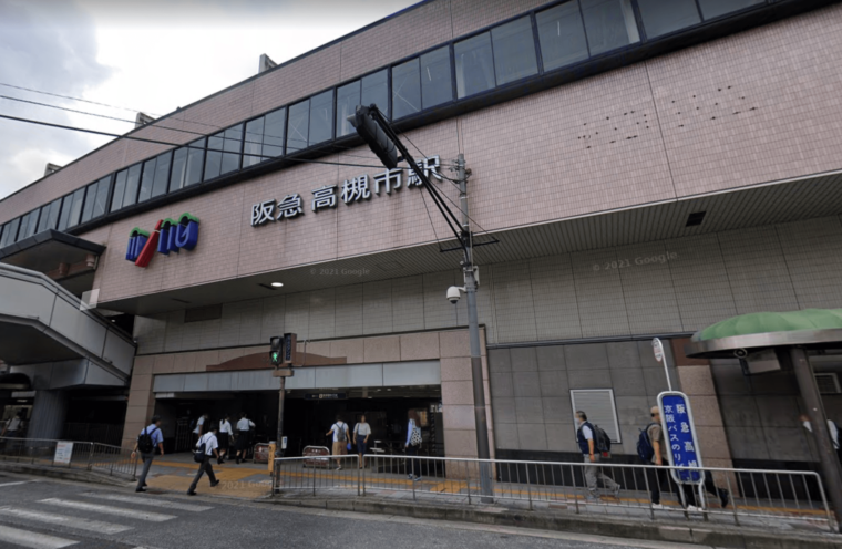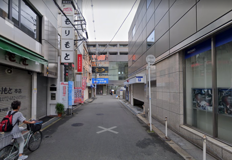 阪急高槻市駅から「みずほ銀行」と「くいもの屋わん」の間を真っ直ぐに進みます。